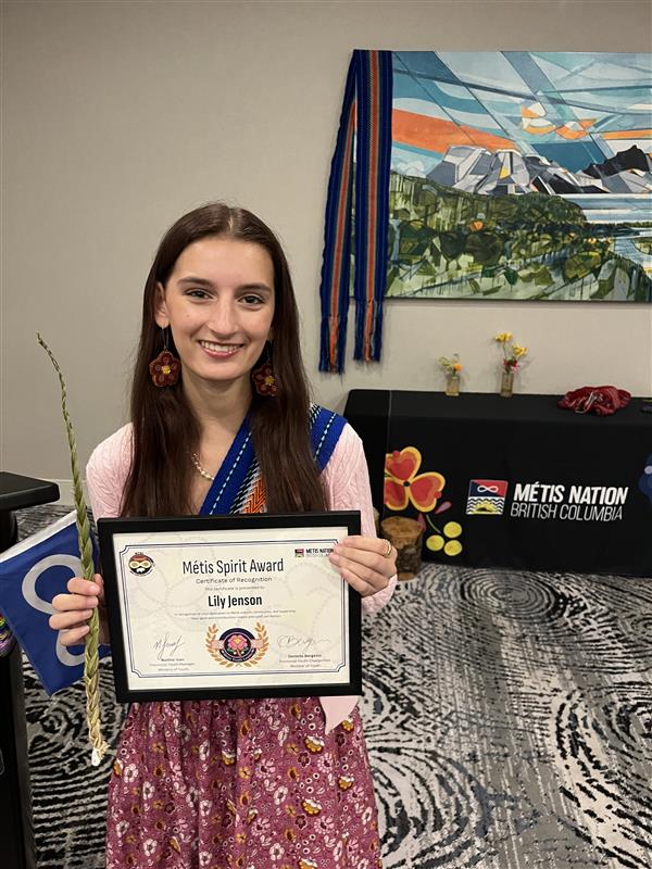 Lily se réjouit également de voir de plus en plus d’espaces d’apprentissage consacrés aux savoirs autochtones dans les écoles. Plus tard, elle aimerait enseigner le métchif pour contribuer à la transmission des langues et des savoirs autochtones. Le Conseil scolaire francophone tient également à la féliciter pour son Métis Spirit Award et la bourse qu’elle a reçu de la part de la Société francophone de Victoria.