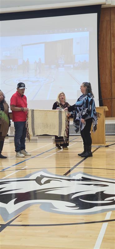 Une cérémonie de don de couverture portée par la Nation Kwikwetlem à l’école des Pionniers-de-Maillardville