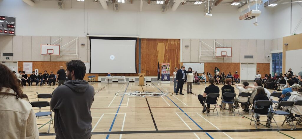 La direction de l’école a ensuite rappelé la portée éducative et humaine de cette rencontre pour l’ensemble de la communauté scolaire. La cérémonie s’est conclue par les interventions de Katherine Joly, présidente du comité des parents, et de Chantal Fadous, conseillère de la vallée du Fraser.