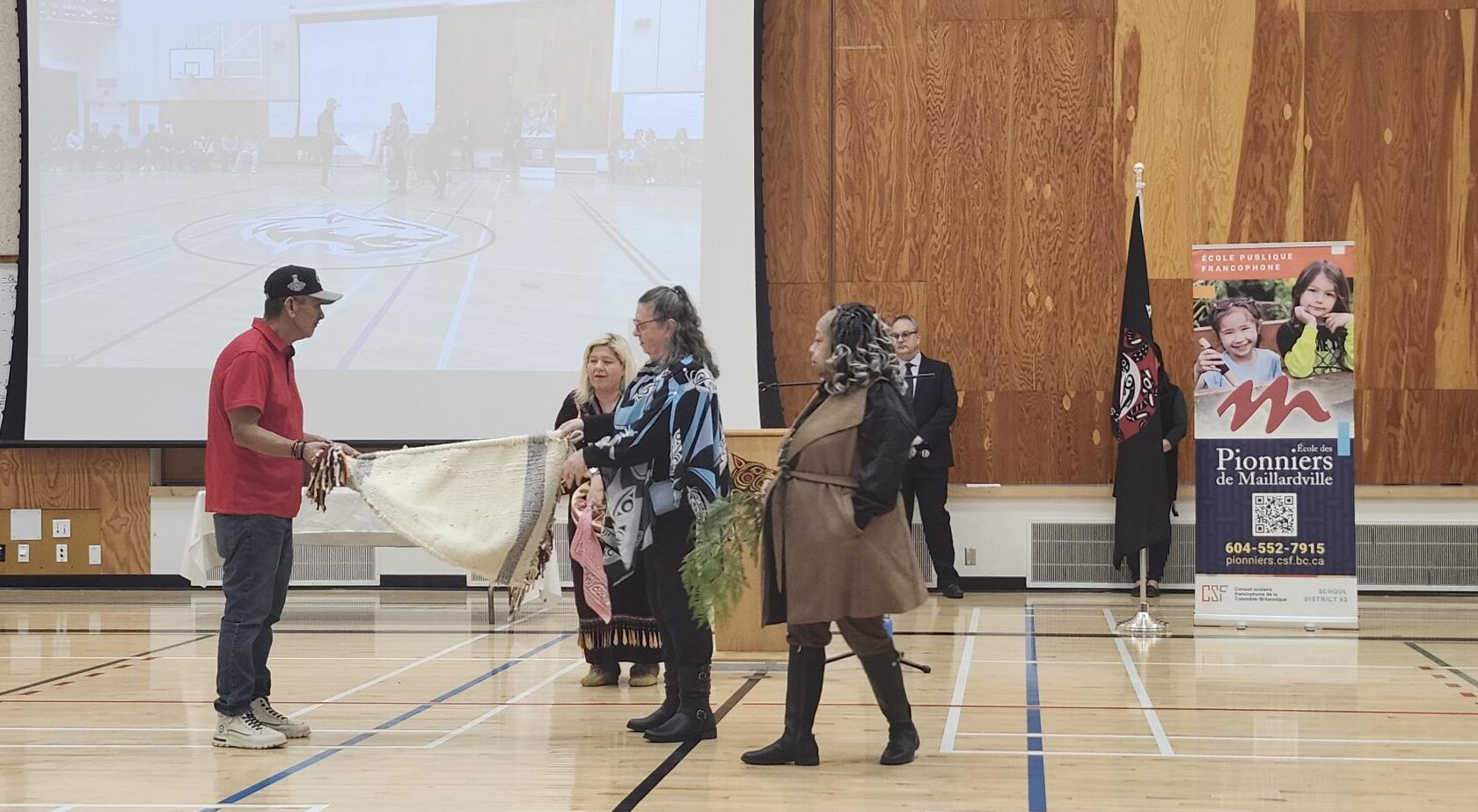 Une cérémonie de don de couverture portée par la Nation Kwikwetlem à l’école des Pionniers-de-Maillardville