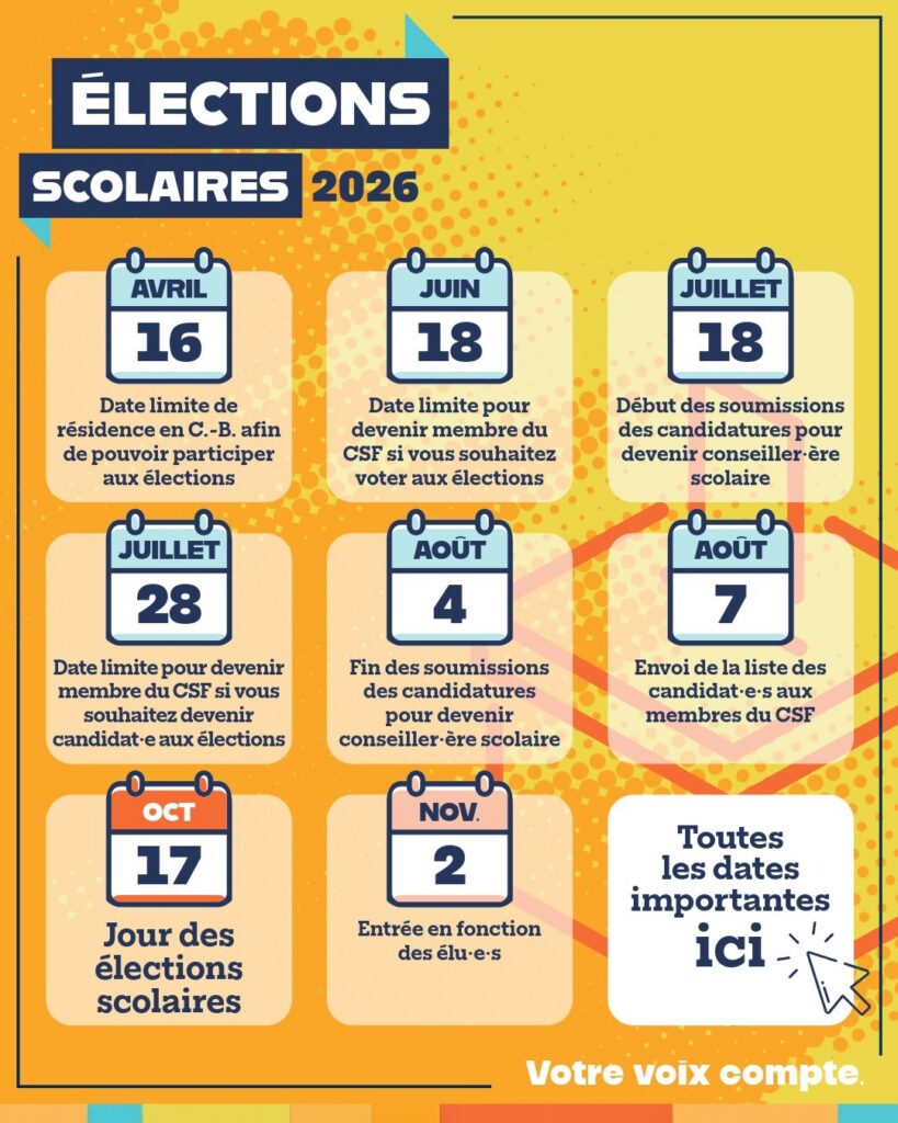 Le Conseil scolaire francophone recevra les mises en candidature :