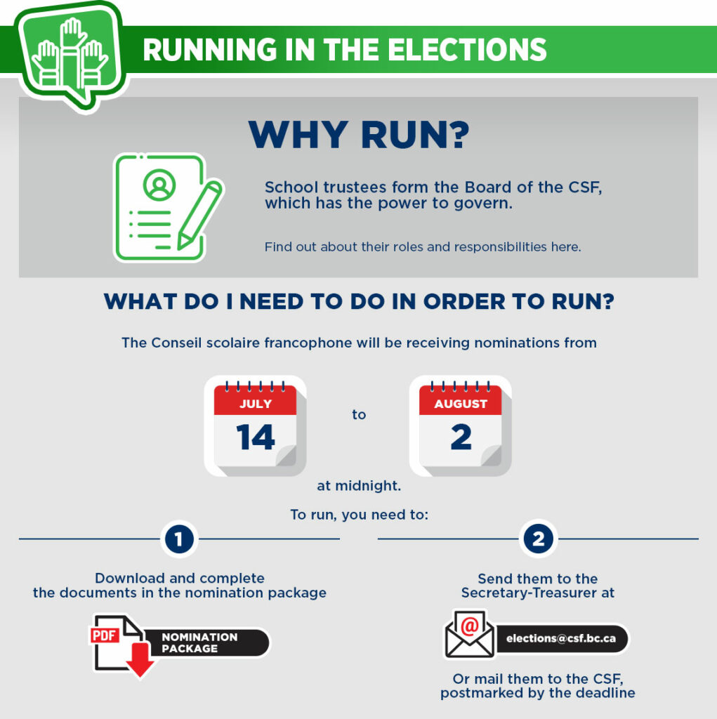BCSTA is the provincial voice for BC’s trustees and school boards. Check out the guide they’ve produced for candidates ahead of the 2022 election: - Guide for Candidates to the 2022 School Election (PDF – French only)