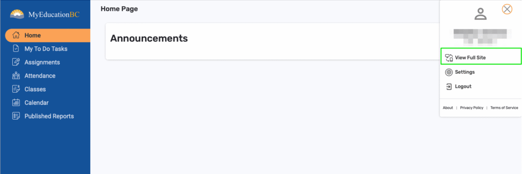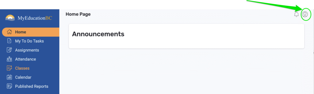 Connect to https://myeducation.gov.bc.ca with your email address and password, once connected go to the right corner