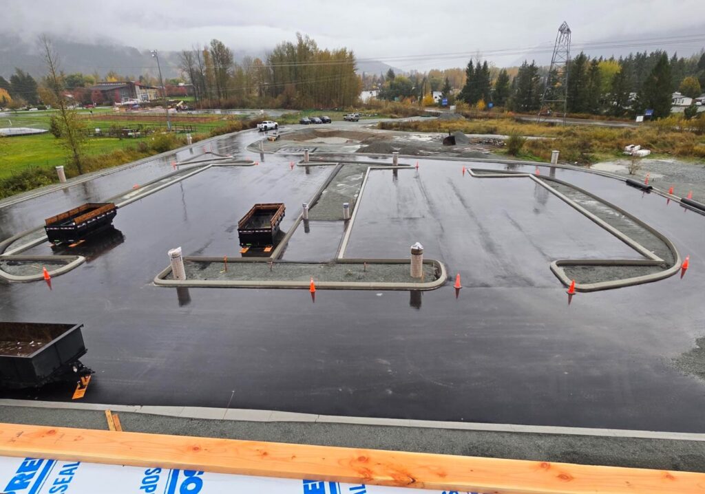 L’installation de la superstructure est en grande partie terminée. L’aire de stationnement du site et les bordures de l’allée, ainsi que le relief d’asphalte sont installés.