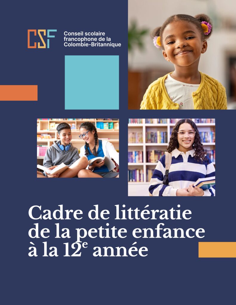 Le « Cadre de littératie du Conseil scolaire francophone » a été créé pour appuyer le Cadre pour enrichir l’apprentissage des élèves. Ce document vise à partager avec la communauté scolaire l’approche adoptée par le CSF pour aider les élèves à réaliser leur plein potentiel en littératie, en les préparant à un avenir où les compétences de communication et d’analyse sont primordiales, tant au niveau local qu’international.